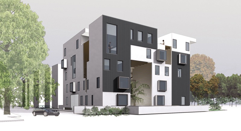 Su Pesaro il concorso viene vinto dallo studio 2Tr Architettura con NOOS Architetti. Il progetto si basa su alcune proposte semplici ma con un forte potenziale innovativo (ed ecologico): l’utilizzo del legno come materiale costruttivo principale (per un edificio di 20 appartamenti distribuiti su 5 piani); l’utilizzo di acqua di falda, per gli impianti di riscaldamento, e di pannelli fotovoltaici per la produzione di energia elettrica, come fonti di energie locali e rinnovabili; l’articolazione dei singoli alloggi intorno ad un grande vuoto centrale o meglio ad un sistema di spazi comuni, generati dalle funzioni distributive ma arricchiti da un evidente plusvalore spaziale (per dimensioni, luminosità, affacci) che ne fa dei potenziali spazi di cohousing. Ovvero, luoghi di incontro, di gioco, di socializzazione dell’abitare. È questo, dal punto di vista spaziale e architettonico il nucleo concettuale e formale del progetto: la realizzazione di un edificio in cui gli spazi individuali traggono valore dal loro mettersi in comune, dal potersi estendere un po’ oltre i 56 (2 camere) o 90 (3 camere) mq previsti per il “nucleo familiare” in una porzione di spazio condivisa, comune, né pubblica né privata ma intermedia tra la soglia della casa e lo spazio urbano. Questo spazio di mediazione era anche stato immaginato come una sorta di atrio bioclimatico, con una serra di ingresso ed un coronamento a camini apribili d’estate.