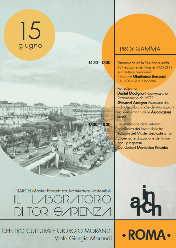 Il 15 giugno si conclude la XVII edizione del Master “Progettista di Architetture Sostenibili” e si conclude il ciclo di lavoro che il Master ha dedicato al quartiere ATER di Tor Sapienza.
